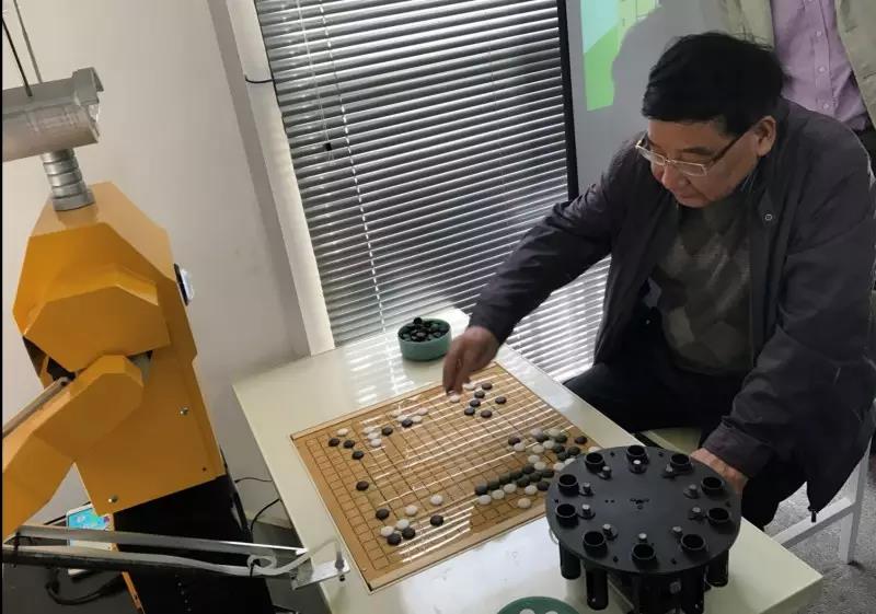 机器人“小智”与杨志存老师对弈。